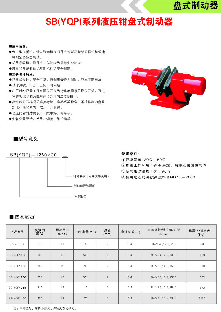 SB(YQP)液壓鉗盤式制動(dòng)器