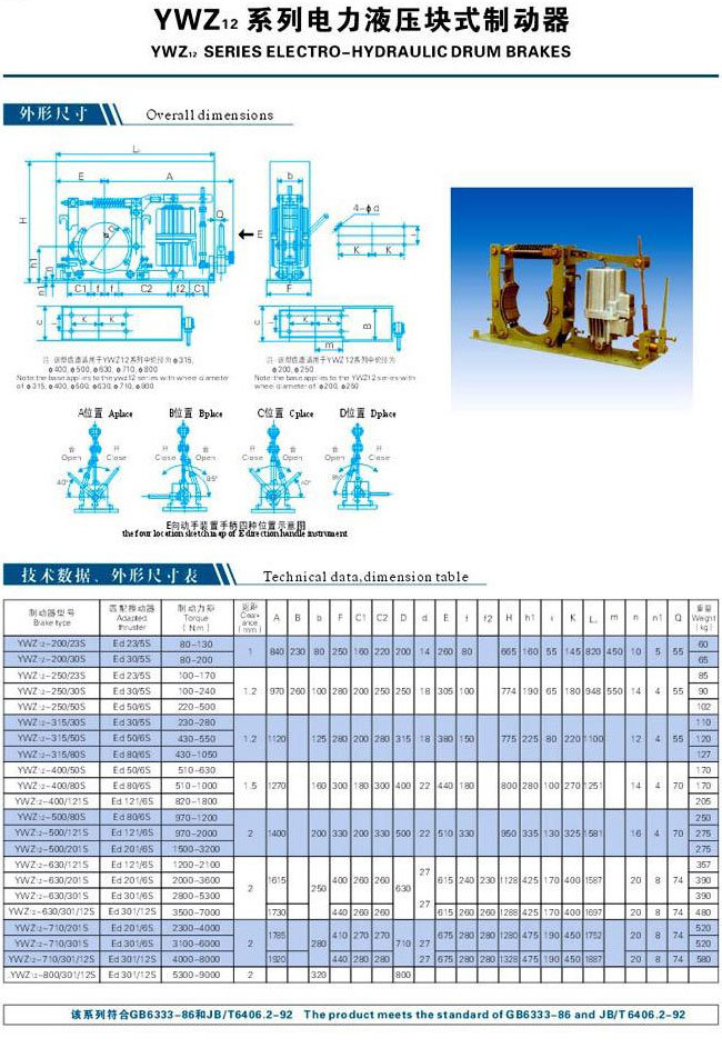 YWZ12系列電力液壓塊式制動器